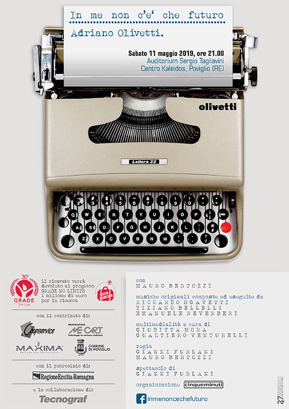 Questo spettacolo di teatro civile vuole raccontare di un uomo, un imprenditore che, prima, molto prima di Steve Jobs e del suo discorso agli studenti “Il vostro tempo è limitato, quindi non sprecatelo vivendo la vita di qualcun altro. Siate affamati, siate folli, perché solo coloro che sono abbastanza folli da pensare di poter cambiare il mondo lo cambiano davvero” diceva “Il termine utopia è la maniera più comoda per liquidare quello che non si ha voglia, capacità, o coraggio di fare. Un sogno sembra un sogno fino a quando non si comincia da qualche parte, solo allora diventa un proposito, cioè qualcosa di infinitamente più grande. “. Questo uomo è Adriano Olivetti, figlio del fondatore della Ing C. Olivetti & C, la prima fabbrica italiana di macchine per scrivere, che raccolse gli insegnamenti del padre per trasformare la Olivetti in una grande aziendale internazionale, con oltre 70 mila dipendenti in tutto al mondo ma, mettendo sempre al centro, l’uomo …